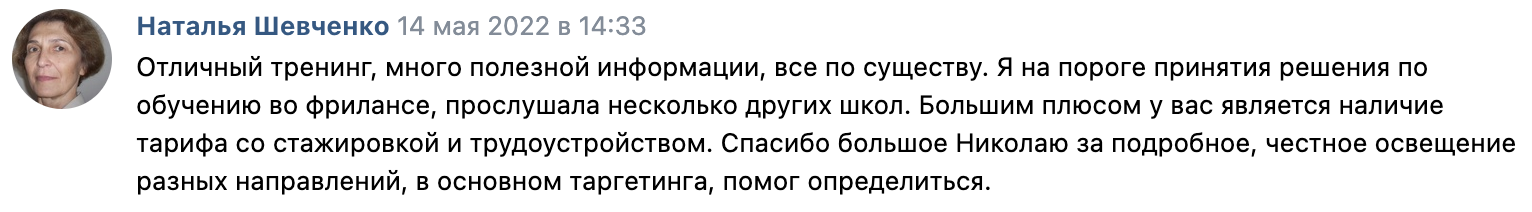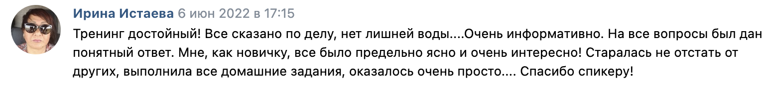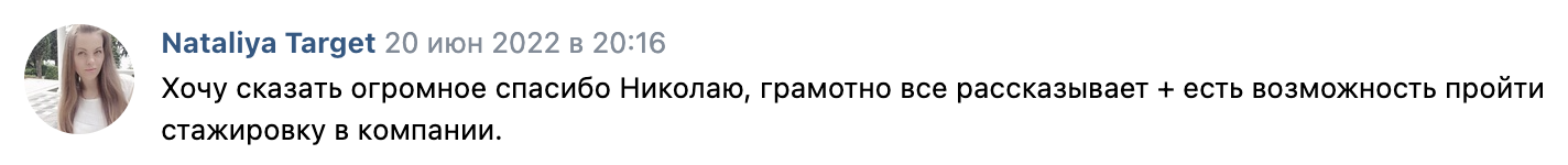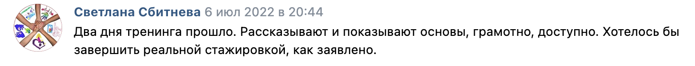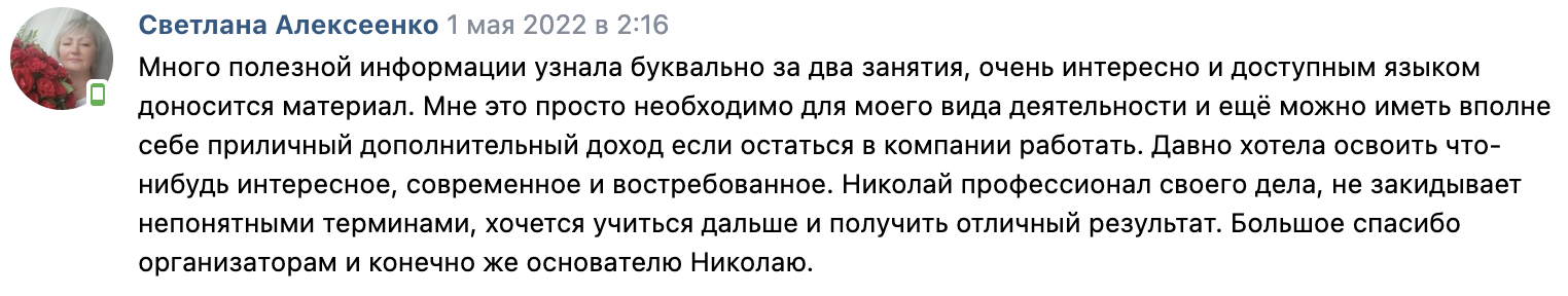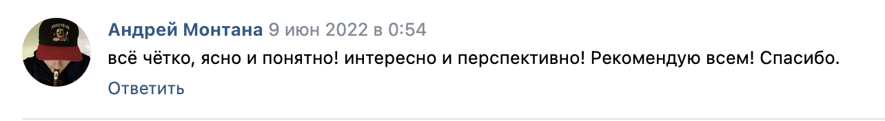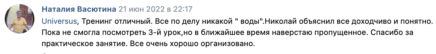 Обратная связь лично от Сергея Волосянкова в течении 3 месяцев